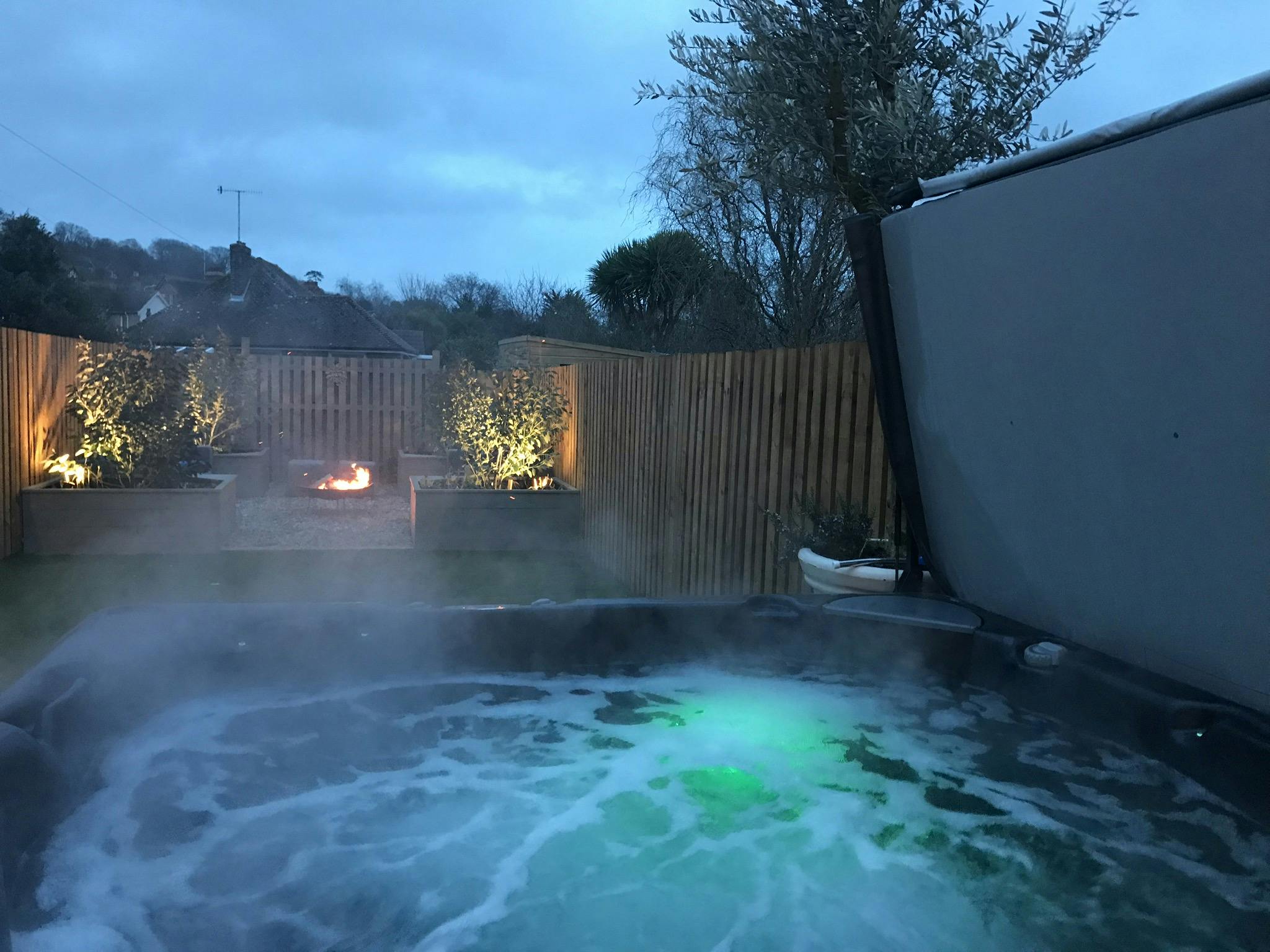 Fling open the doors from the kitchen into your beautifully landscaped secluded garden. There's decking space to relax, catch the early sun with your morning coffee. There's facilities to wash down muddy dogs, bikes or equipment and after a day exploring relax in the Hot tub to revive weary bones and once the sun has set, gather everyone together around the fire pit. Enjoy the glow of an open fire under starry skies with a little tipple or mug of milk to melt a chocolate stirrer from local chocolatiers.